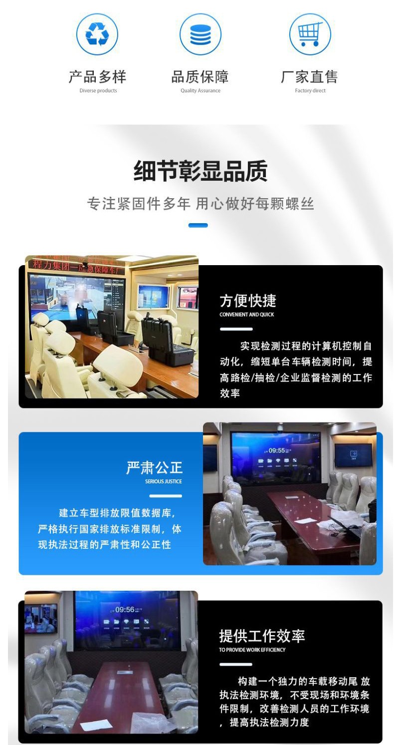 整車重量分配布局、空間布置合理,能滿足操作人員使用和維修。車內(nèi)安裝綜合顯示屏和音響,以顯示圖像。